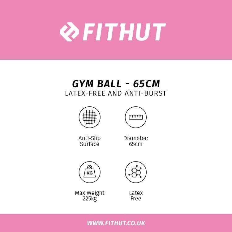 FitHut 65cm Gym Ball with Hand Pump - Pink