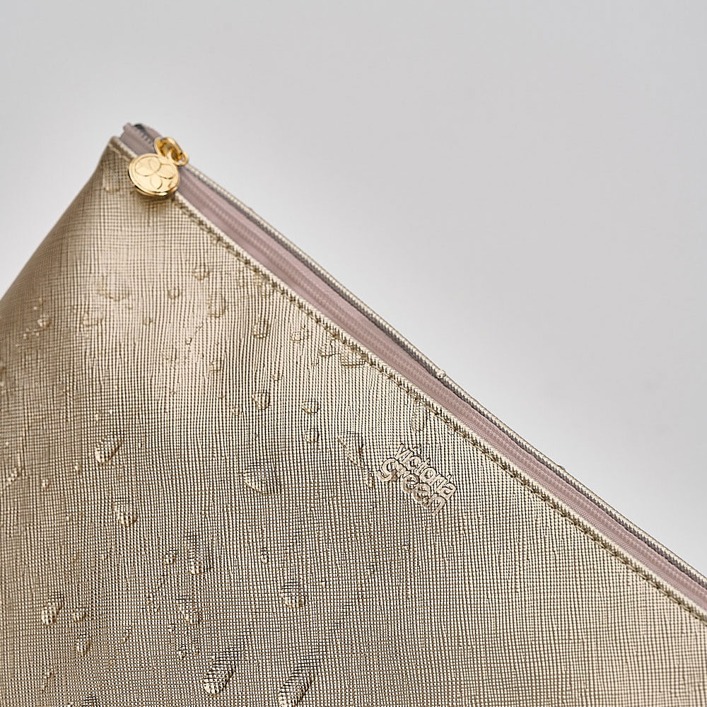 A luxurious, champagne gold colour, this large makeup bag is a timeless beauty bag which goes the extra mile to protect your essential beauty items.